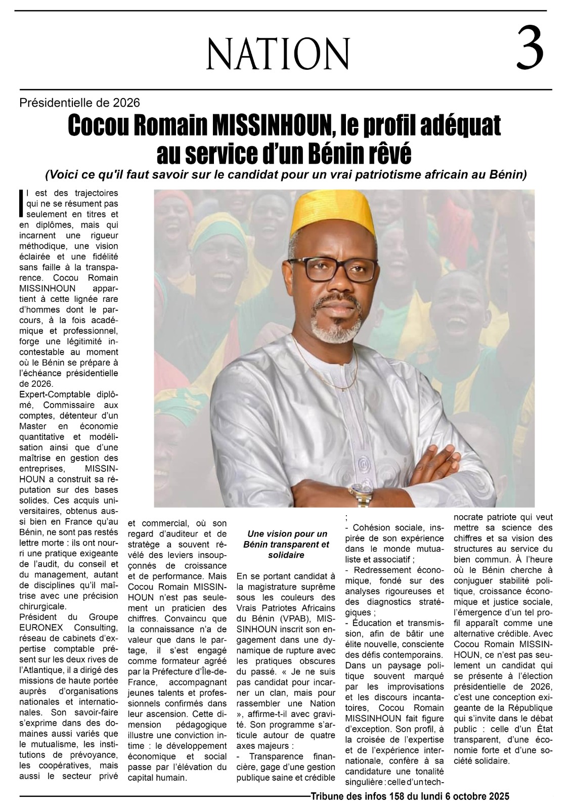 Cocou Romain MISSINHOUN est un enfant du Bénin debout, né le 27 février 1974 à Cotonou au Bénin